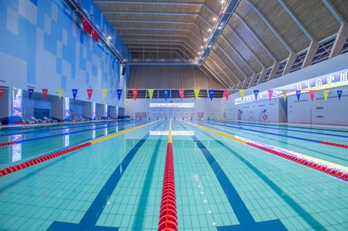鄭州奧體中心游泳館位于鄭州奧體項(xiàng)目東南端(中原區(qū)長(zhǎng)椿南路與博體路交匯處),是鄭州市甲級(jí)游泳場(chǎng)館,鄭州奧體中心游泳館建筑面積1.9萬(wàn)平方米,館內(nèi)設(shè)有3100個(gè)固定座席,擁有標(biāo)準(zhǔn)10道50米競(jìng)賽池,10道50米訓(xùn)練池,10道25米教學(xué)池,既有可以承辦國(guó)際賽事的專業(yè)級(jí)比賽場(chǎng)館,又有滿足全民運(yùn)動(dòng)的標(biāo)準(zhǔn)泳池,更配備了完善的更衣休閑區(qū)及全館智慧科技系統(tǒng),市民朋友可以盡享宏偉水上場(chǎng)館的視覺沖擊與暢快運(yùn)動(dòng)的極致體驗(yàn)!