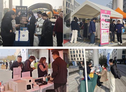 本次展銷會吸引了園區(qū)20余家優(yōu)質(zhì)企業(yè)踴躍參與,涵蓋服裝服飾、日用百貨、智能科技、生活服務(wù)等多個領(lǐng)域。從潮流女裝到智能設(shè)備,從眼鏡驗(yàn)配到園區(qū)餐飲,琳瑯滿目的展品背后,是園區(qū)企業(yè)“不出園,即可對接資源”的生態(tài)優(yōu)勢。