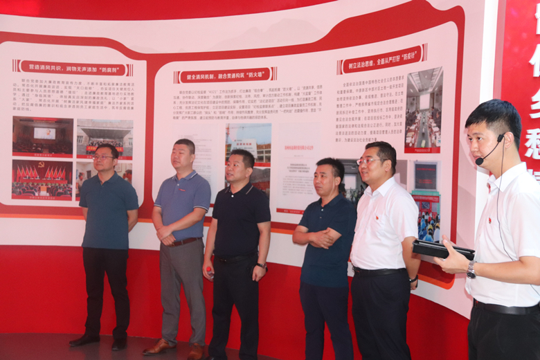 授牌儀式后,李偉一行在指揮部聽取了項目沙盤講解,詳細了解了中原新區(qū)目前在建項目的區(qū)位優(yōu)勢、發(fā)展方向、工作模式等,并參觀了“聚力民生 紅映中原”中原新區(qū)聯(lián)合黨委黨建展廳和基層黨校,深入了解了聯(lián)合黨委的成立背景、運行機制、組織功能、實踐過程等,對聯(lián)合黨委和鄭州地產(chǎn)集團西流湖公司探索出的“一紅一綠一清”同步推進、“12343”黨建工作體系、“支部建在項目上”“黨建進總包合同”“五同工作法”等黨建創(chuàng)新舉措表示高度贊賞。