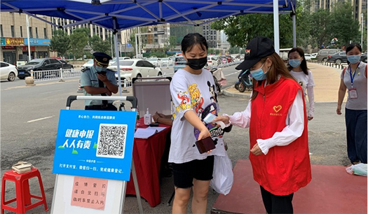 疫情防控刻不容緩。志愿者們首先仔細(xì)詢問了社區(qū)值守人員防疫工作流程及細(xì)節(jié),認(rèn)真記錄社區(qū)防疫的步驟和相關(guān)要求。志愿者們配合社區(qū)工作人員提醒大家正確佩戴口罩,對(duì)進(jìn)出社區(qū)人員進(jìn)行健康掃碼和體溫測(cè)量,一個(gè)個(gè)忙碌的身影為社區(qū)抗疫一線筑牢“防護(hù)墻”。